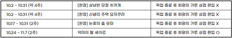 10월 픽업 정보